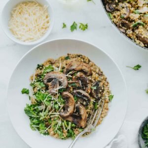Et entre nous… le mélange de champignons fondants, de légumes rôtis et de riz bien crémeux, c’est juste irrésistible.